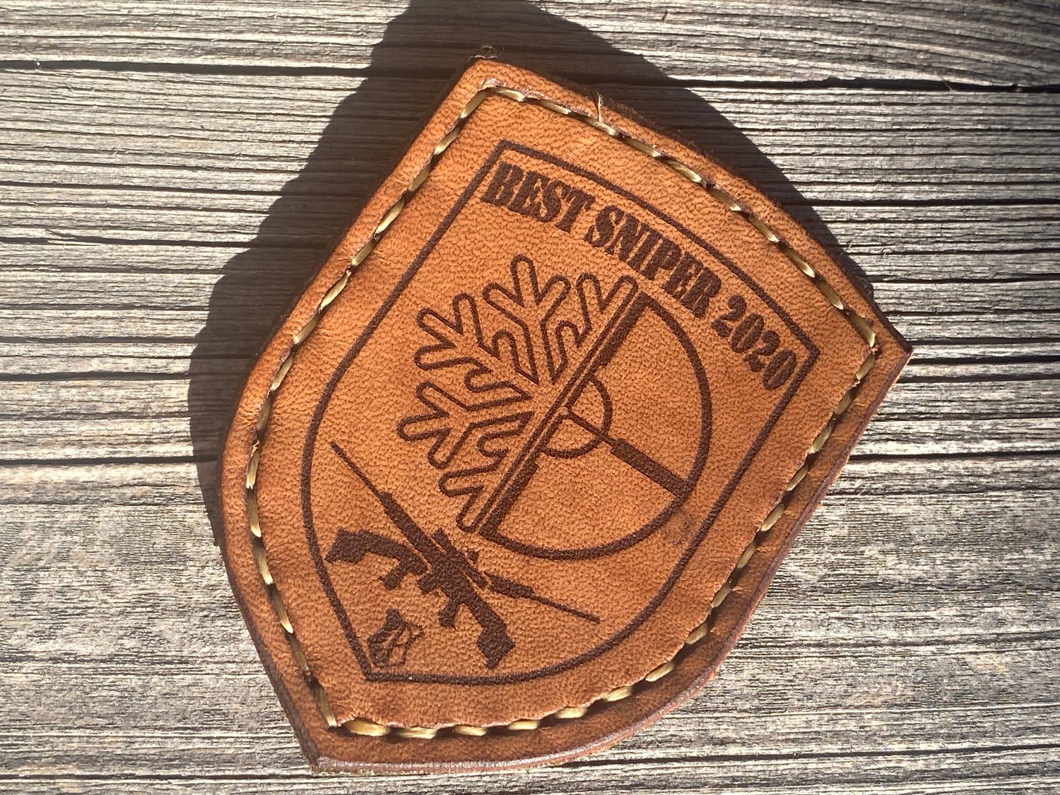 Patches en Cuir (vachette), cousus main, fièrement produits en Valais pour l'édition 2022 du Best Sniper "Hard and Cold"